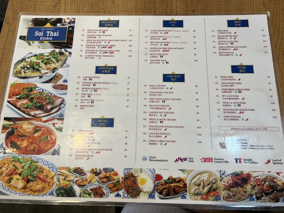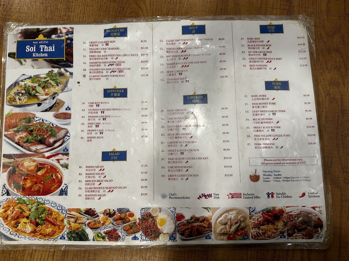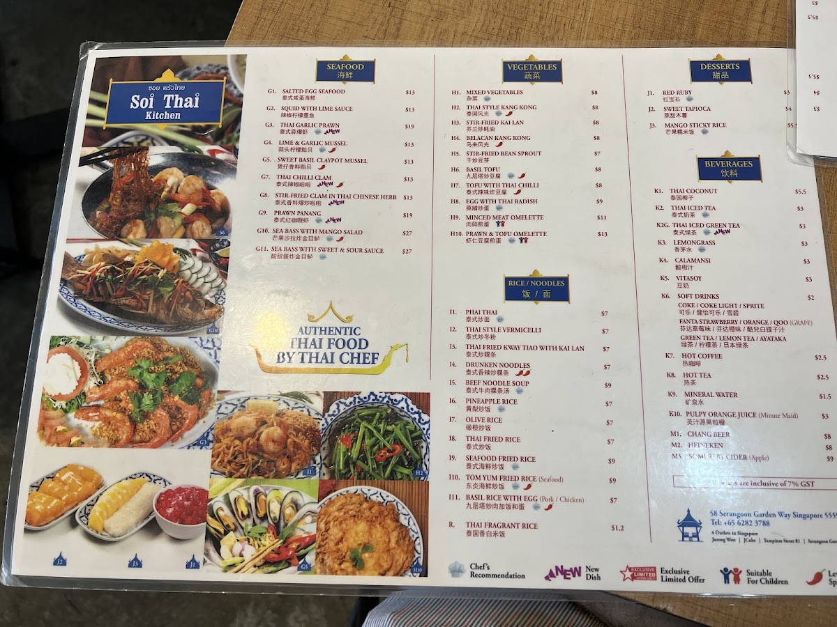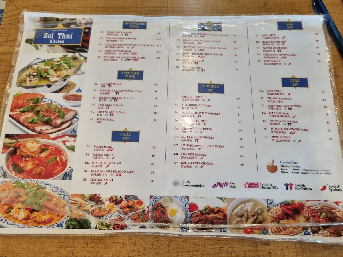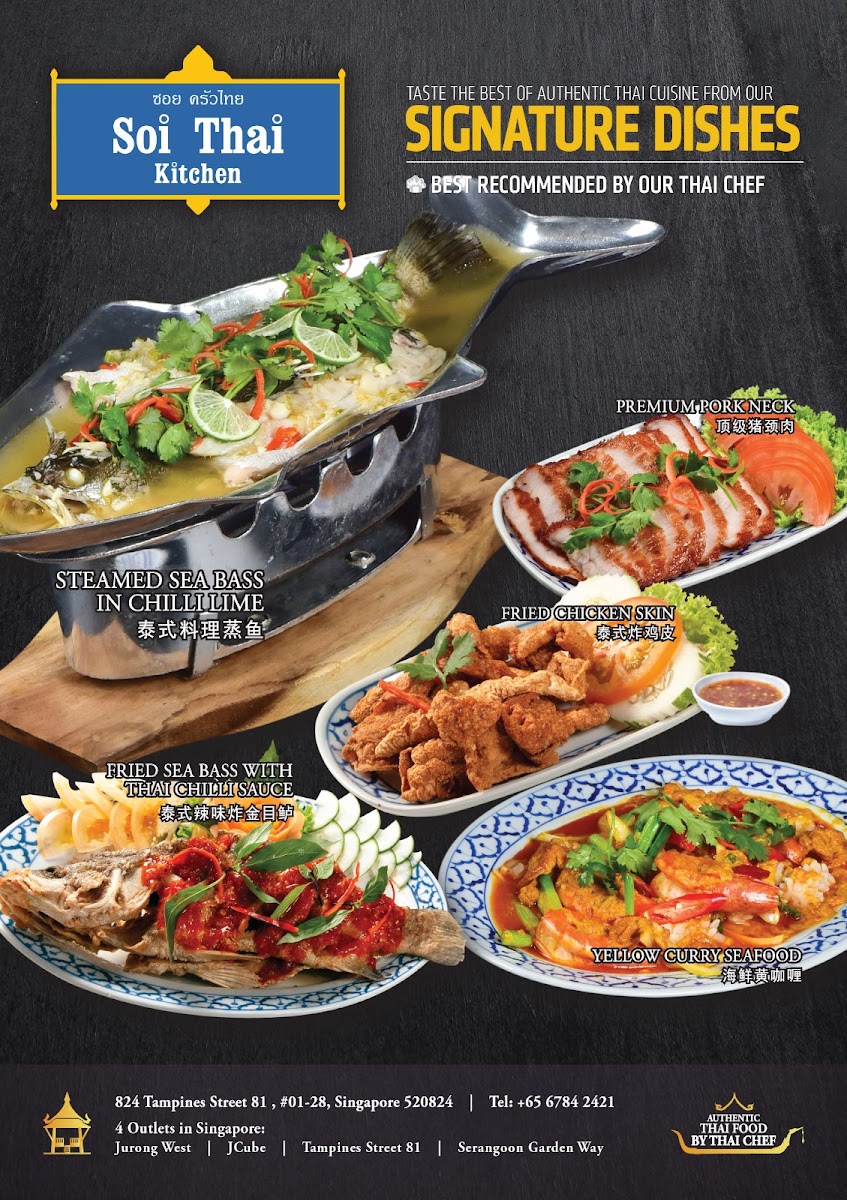 Welcome to Soi Thai Kitchen, nestled in the heart of Serangoon Gardens, Singapore. This charming eatery offers a delightful menu brimming with authentic Thai flavors that transport diners straight to Thailand. Highlighted by signature dishes like the Steam Seabass with Chili Lime and the crowd-favorite Grilled Pork Neck, every plate is crafted with fresh, high-quality ingredients. The menu also boasts a variety of appetizers, including Pandan Chicken and Fish Cakes, each showcasing the harmonious balance of spices and freshness typical of Thai cuisine.